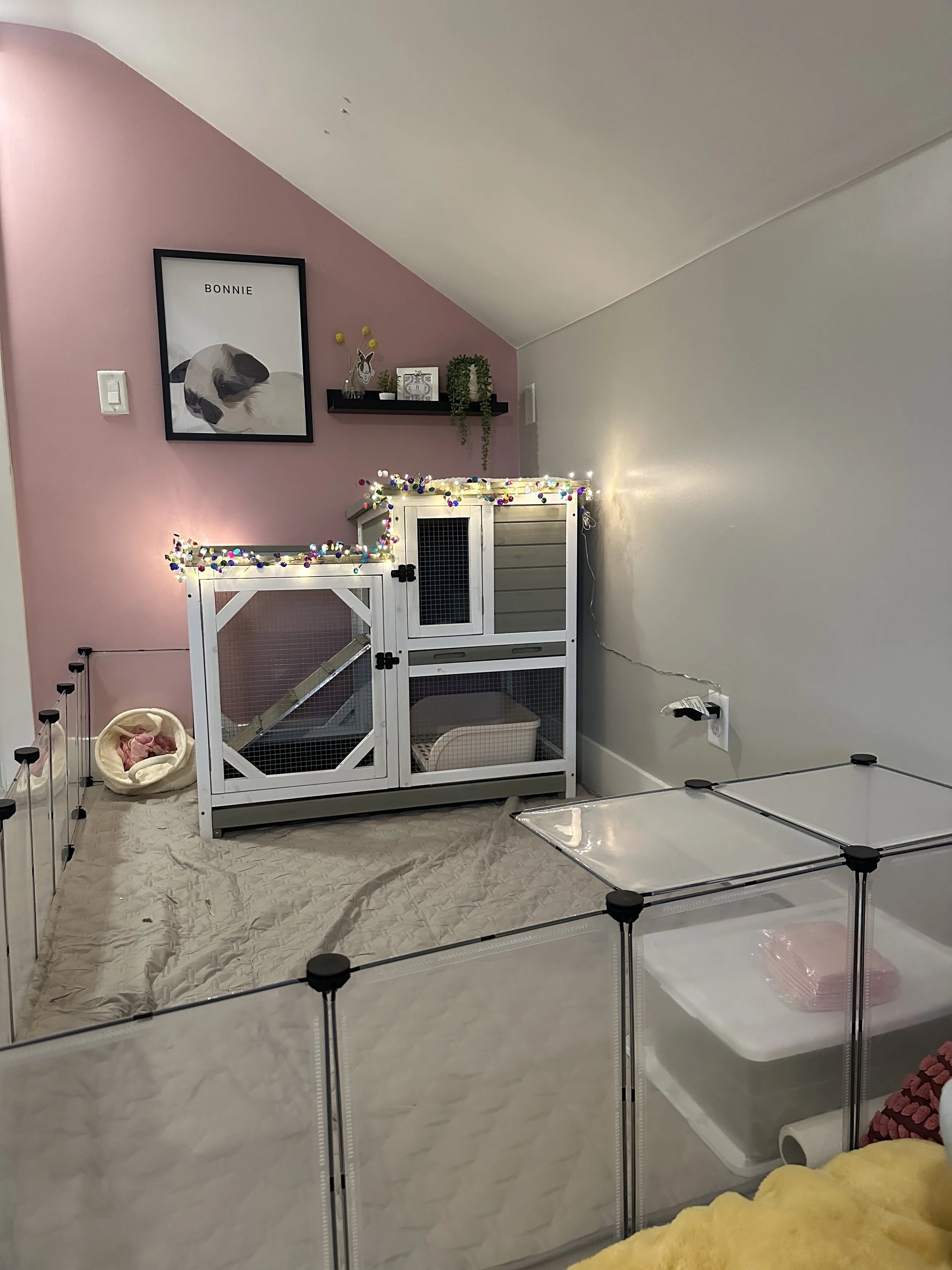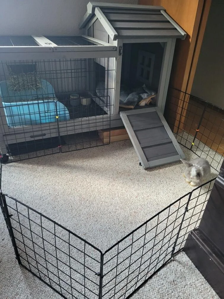 Our sweet bunny friend Lori sent us this picture of her little Maple’s set up! Love the hutch and play area! Lori also added a padding underneath to help protect her carpet from accidents and chewing. See link below for a link to the hutch & padding.